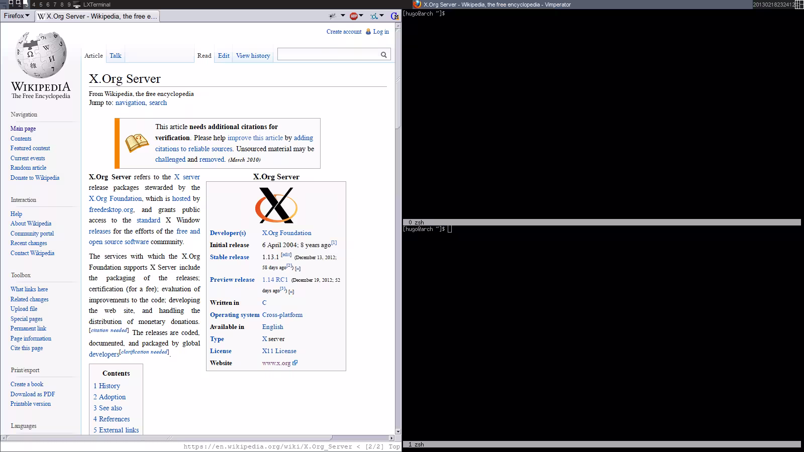 Infinality.net freetype & fontconfig Patches — these are necessary to prevent Linux font rendering from sucking. With fontconfig correctly tuned, font rendering is “acceptably close” to Windows 7 Cleartype.